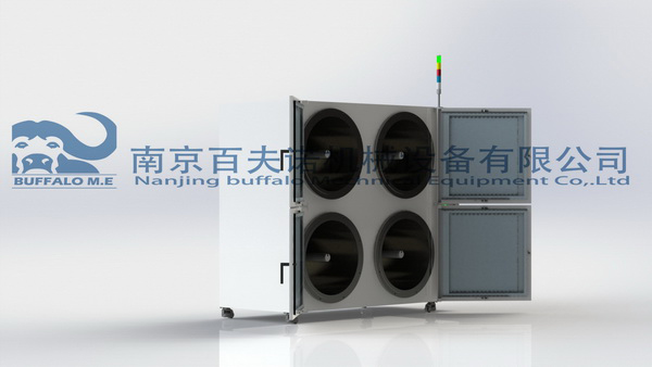 加熱室為圓桶型,便于電池極片整卷裝載,在真空狀態(tài)下烘烤。